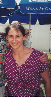 The purple spot thing was a shorts jumpsuit made with rayon (one of my fave fabrics) I really loved that suit (look at my hair - I have hair that does what it likes regardless of what I'd like it to do). That was at the Woodford Festival in the early days.