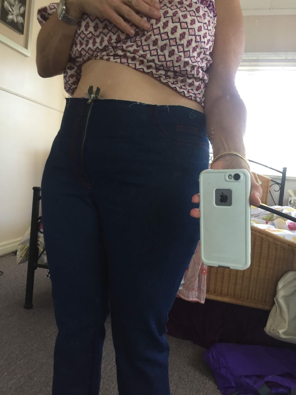 Didn't have a blue zip on hand but a green one.. no problem. Too long, also no problem; this is a stash pair of jeans. Yay!